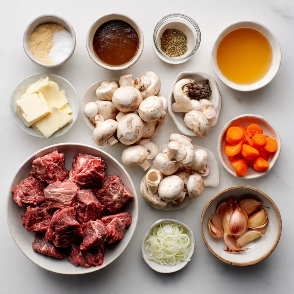 Season the beef cubes generously with salt and pepper. Chop all vegetables and measure out herbs and liquids. Having everything ready makes the cooking smooth and stress-free.