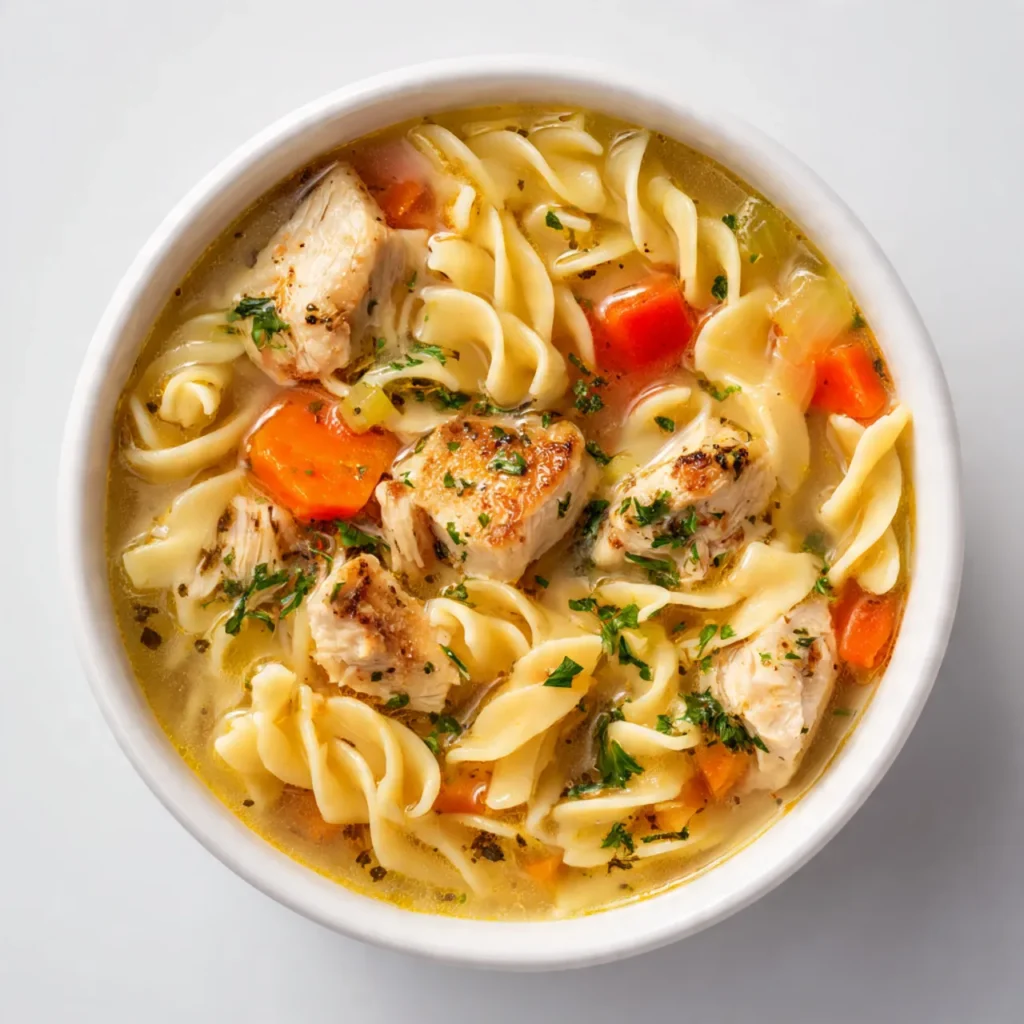 This soup is dependable in the best way. The flavor is clean and comforting, with soft noodles and tender chicken that feel satisfying without being heavy. It’s weeknight-friendly and made in one pot, which keeps cleanup simple and stress low. The ingredients are budget-conscious and flexible, so it’s easy to adjust based on what you already have. Leftovers store well, making it freezer-friendly and perfect for meal prep. Chicken noodle soup is also crowd-pleasing, whether you’re serving family or saving portions for later. It feels cozy, familiar, and steady, which is exactly what makes it a recipe people keep coming back to and saving for future days.