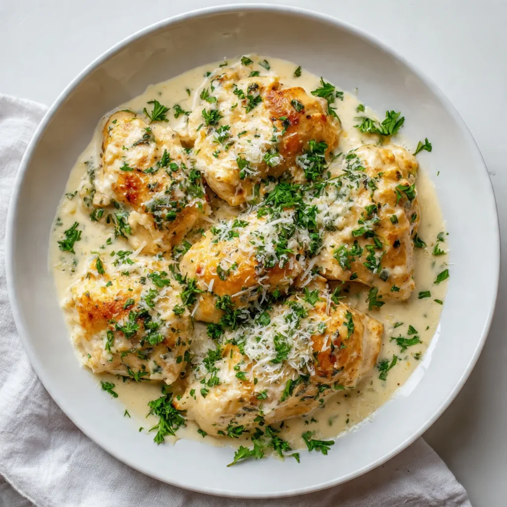 Return chicken to the pan and coat with sauce. Simmer for 5–7 minutes until chicken is cooked through and sauce is creamy. Sprinkle Parmesan and parsley before serving.