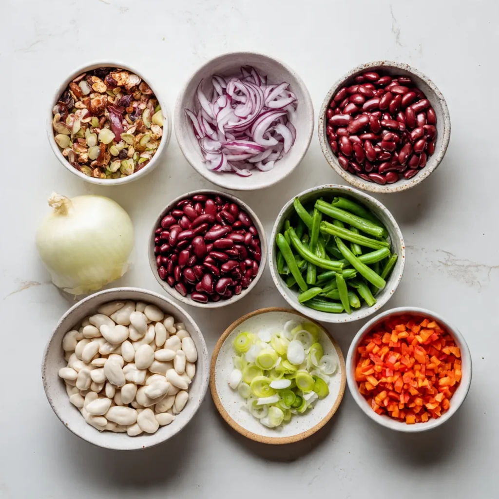 Dense bean salad is a hearty, flavorful dish made with a variety of beans, fresh vegetables, and a tangy dressing. It’s perfect for busy evenings, family meals, or a healthy side on chilly nights. I like to rinse and drain the beans thoroughly so the salad stays light and fresh without being watery.