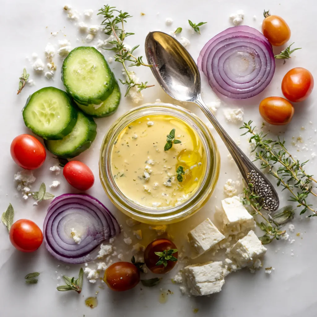 Taste and adjust seasoning with extra salt, pepper, or lemon if needed. Let the dressing sit for 5–10 minutes before serving to allow flavors to meld. It’s ready to pour over crisp greens, cucumber, tomatoes, or feta cheese.
