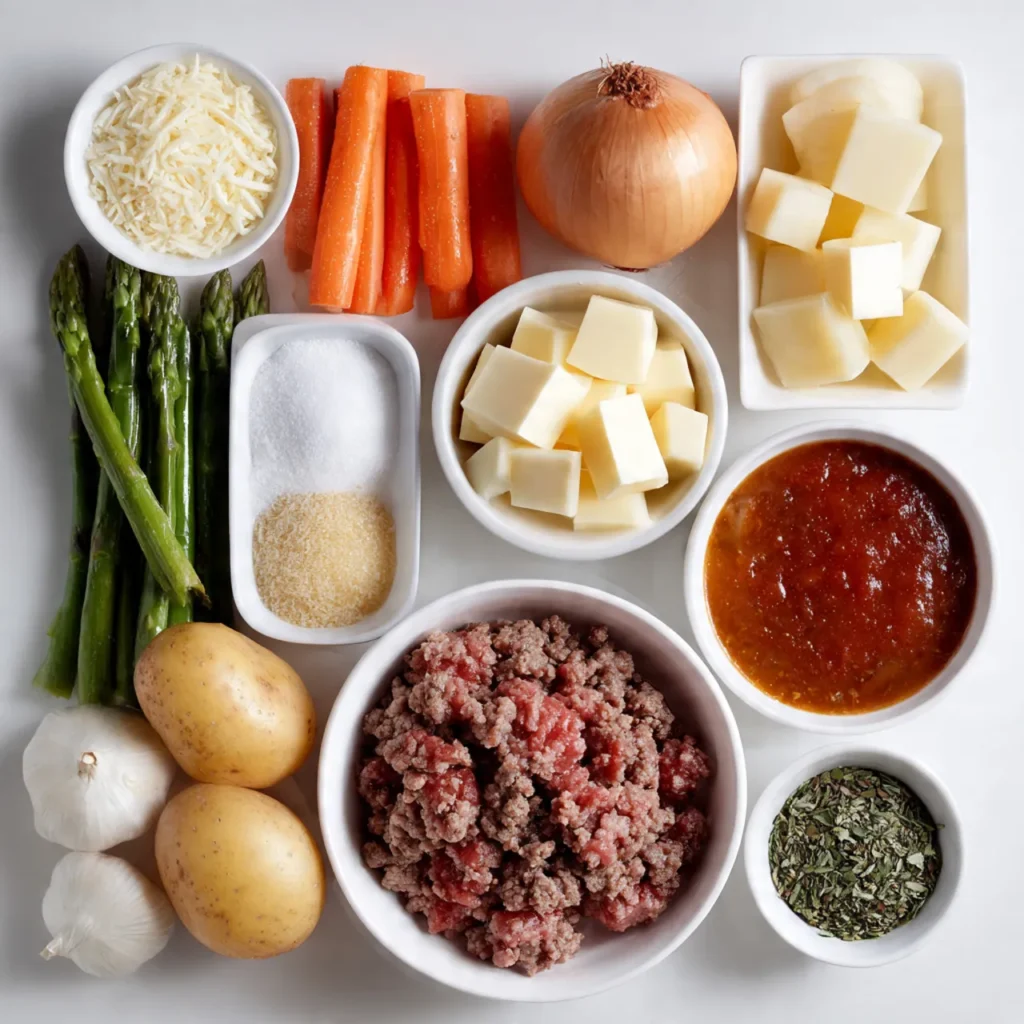 Chop all vegetables and measure seasonings. Dice potatoes and green beans to even sizes for uniform cooking. Prepare beef broth and have canned tomatoes ready to go.
