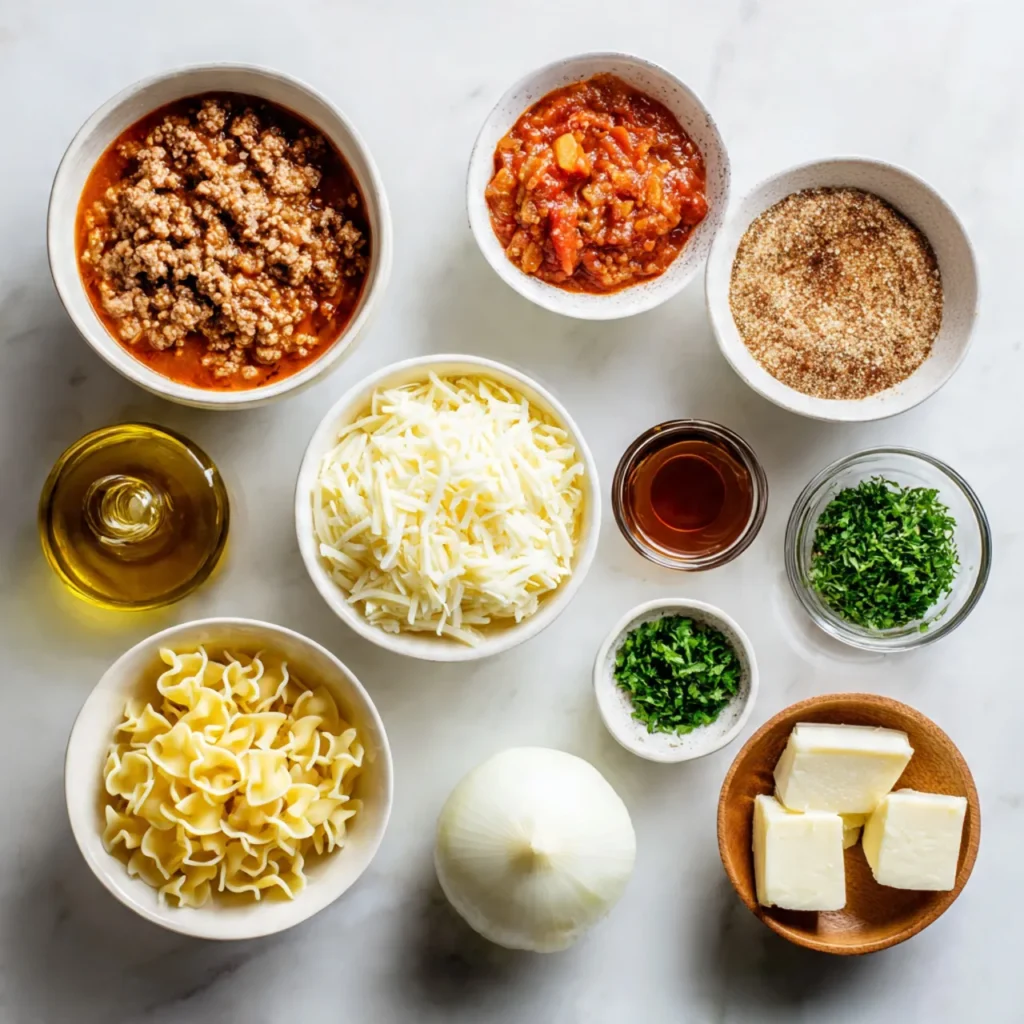 Dice the onion, mince the garlic, and break the lasagna noodles into bite-sized pieces. Measure out cheeses and seasonings so everything is ready. This keeps cooking smooth and prevents rushing once the pot is hot.