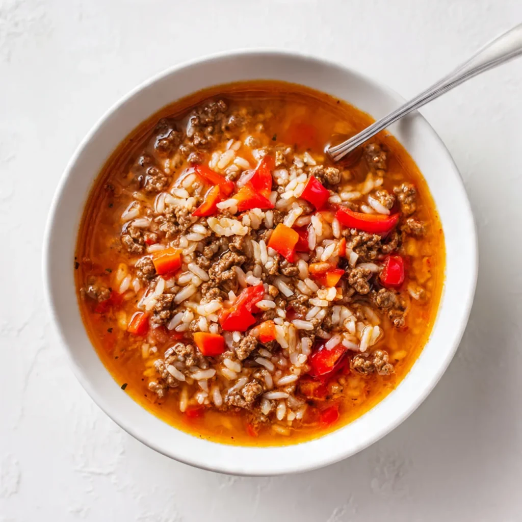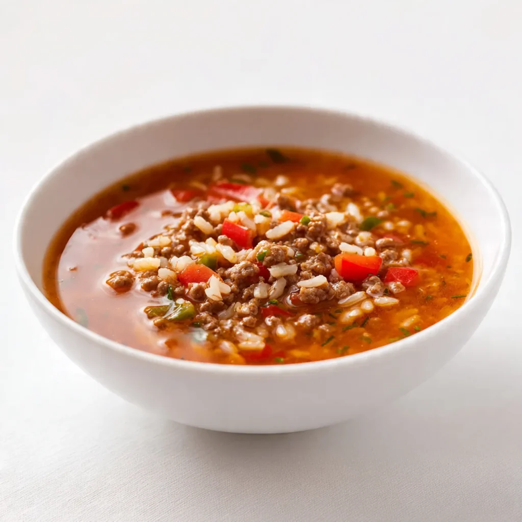 kcalHearty soup with ground meat, rice, and bell peppers in a savory tomato broth. Cozy, easy, and perfect for weeknight dinners or family meals.