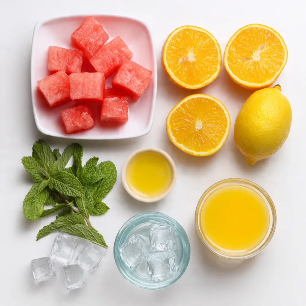 Wash all fruits and mint leaves. Cut watermelon into cubes and juice the oranges and lemon. Having everything prepped first makes blending smooth and easy.