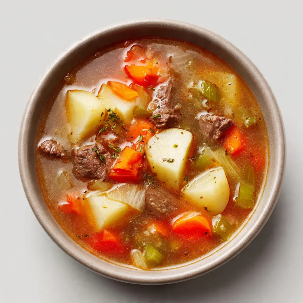 Each serving contains about 280–340 calories. Protein ranges from 18–24 grams per bowl. The soup provides iron from beef and fiber from vegetables. Values are estimates and may vary based on ingredients and portion sizes.