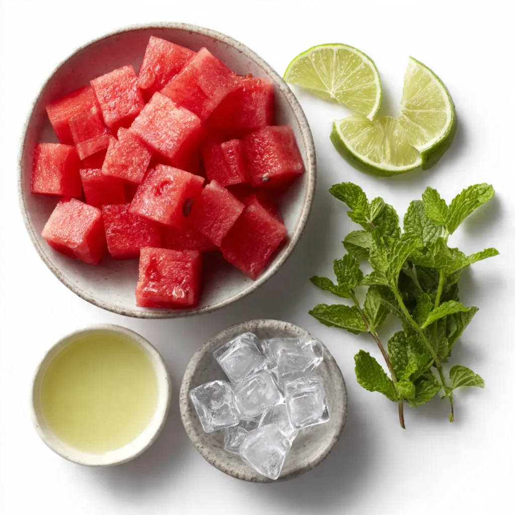 Wash the watermelon well and pat it dry. Cut it into manageable slices, then into small cubes. Remove any visible seeds. The flesh should look bright and juicy, with no pale or dry spots before blending.