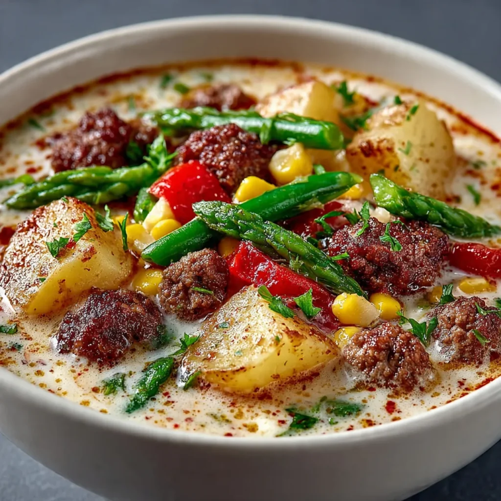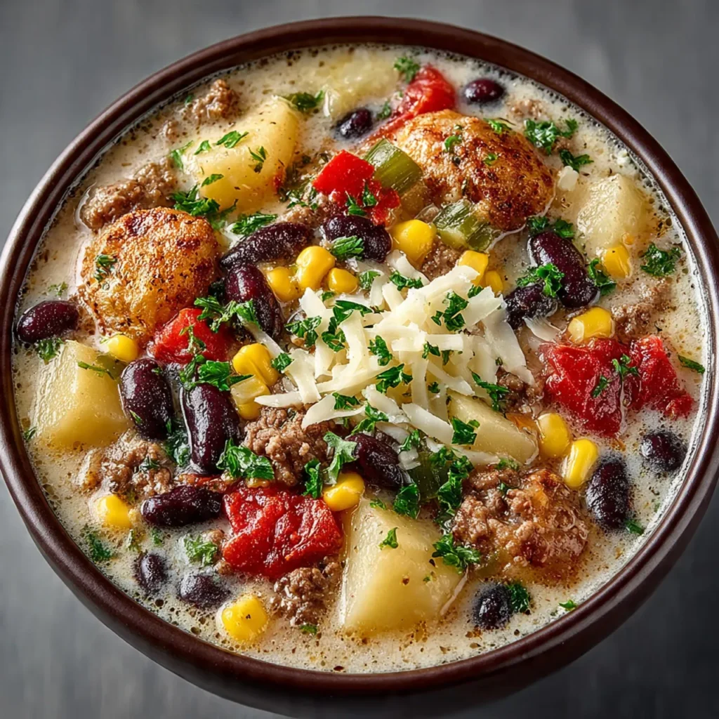 kcalA rich, creamy soup made with ground beef, potatoes, beans, and cheese. Warm, filling, and easy to make, it’s perfect for cold days and relaxed family dinners.