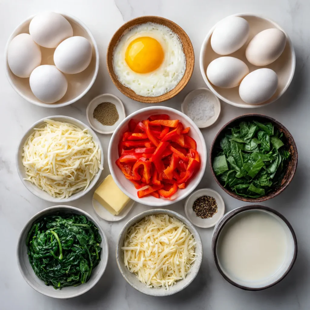 - Lower heat and pour in egg mixture. Add spinach and cheese.