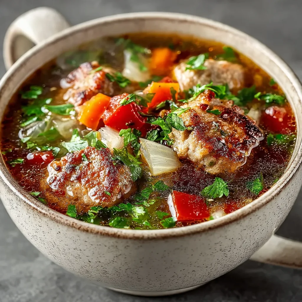 kcalA warm, hearty soup made with Italian sausage, vegetables, and broth. Cozy, filling, and easy to make in one pot for cold days.
