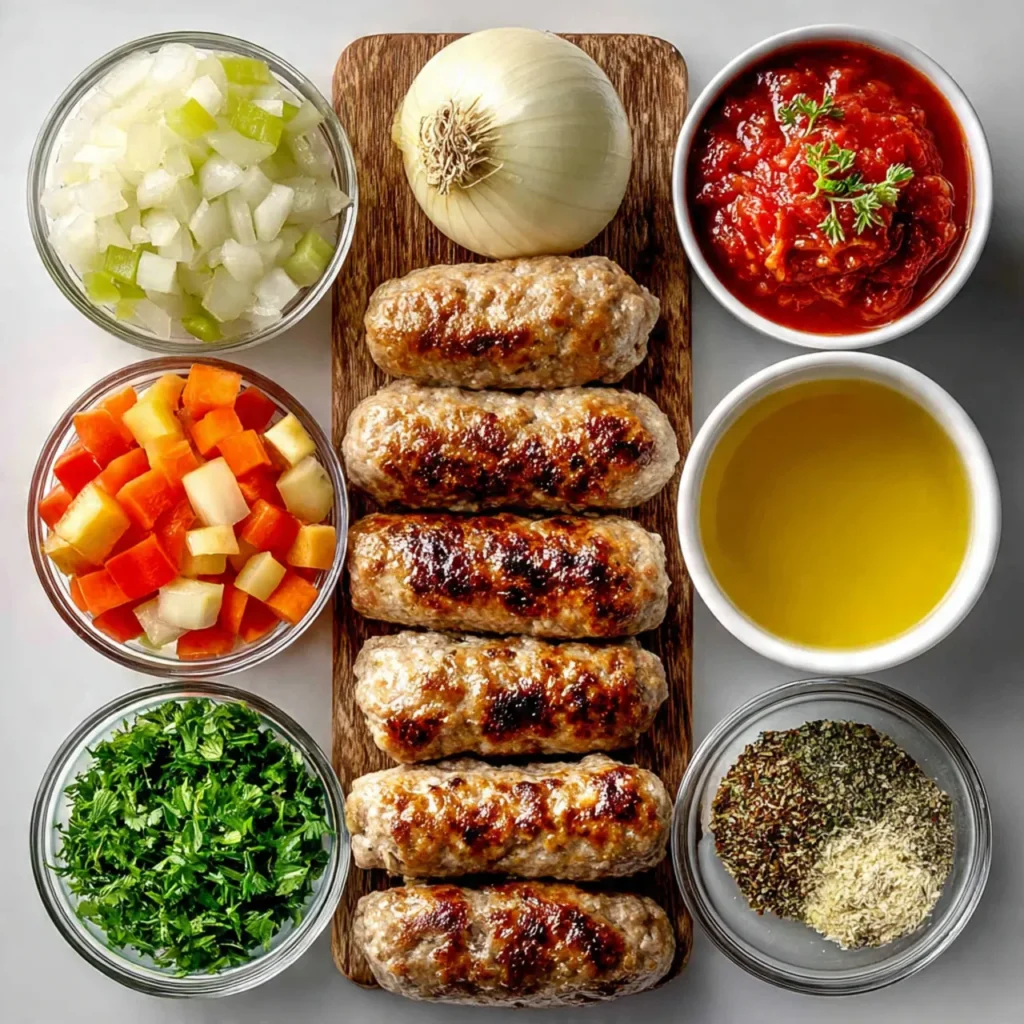Remove sausage from its casing if needed. Chop all vegetables into small, even pieces. Keep everything near the stove so cooking feels smooth and unhurried, with no rushing once the pot is hot.